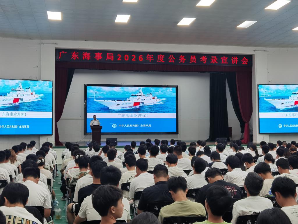 随后,与会人员集中观看了广东海事局宣传片,全方位了解了广东海事局履行水上交通安全监督管理、船舶及相关水上设施检验和登记等行政管理和执法职责的有关情况。赵瑞风、杨坤鹏等详细介绍了2026年度广东海事系统招录招聘计划、岗位设置、专业需求等情况,分享了海事工作的实践经验和心得体会。