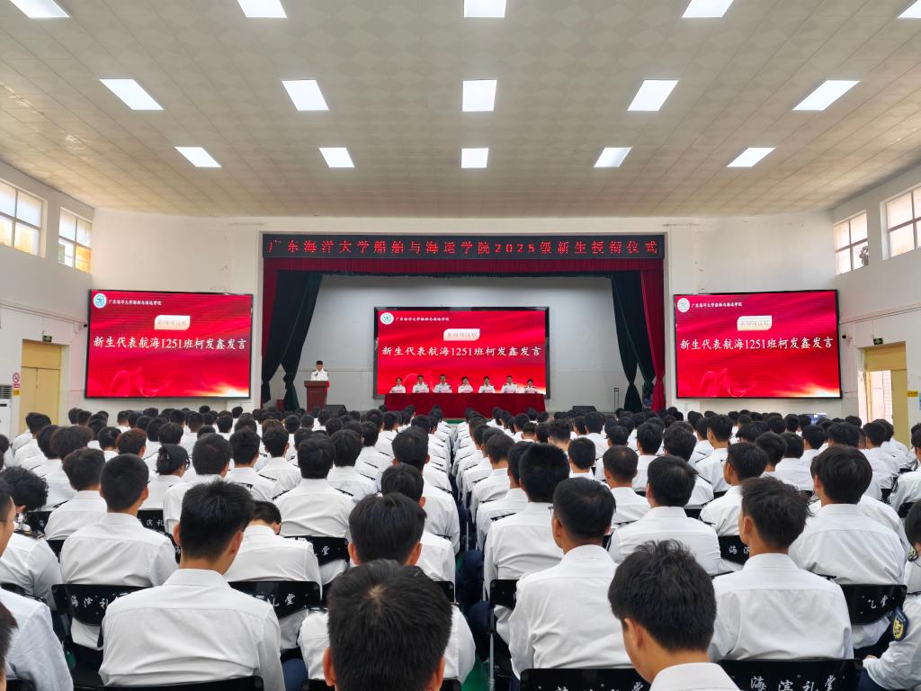 党委书记邓朝晖,正处级辅导员、党委副书记齐昊,轮机系主任安连彤,半军管大队长江涛,副大队长吴捍泽,辅导员黄荔、邓海漫及2025级各中队同学等300余人参加会议,活动由江涛主持。
