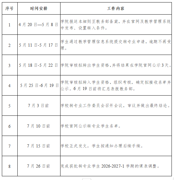 转专业工作内容和时间安排